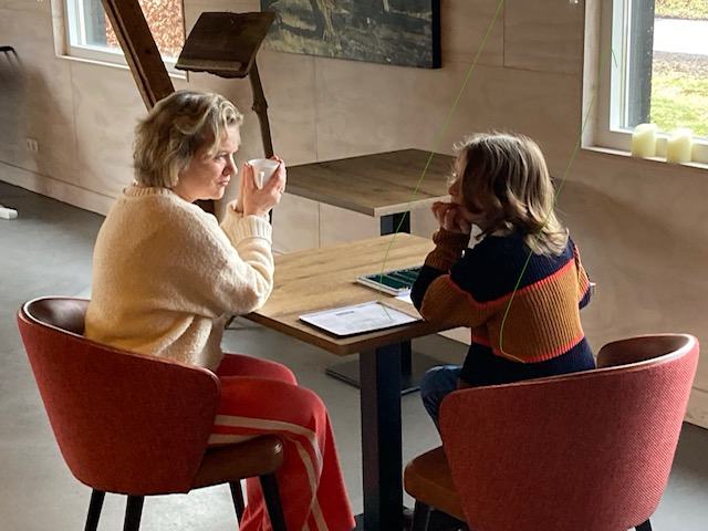 We leren kinderen weer een gesprek te voeren, hun mening te onderbouwen en hun gevoel te benoemen. De kracht van taal is zó belangrijk in deze tijd! Dit alles doen we op een speelse manier, met een kopje thee en een koekje erbij. Op een huiselijke plek in de natuur. Soms gaan we even naar buiten, om te leren over het verschil tussen een den en een spar of we vertellen over de wolf."